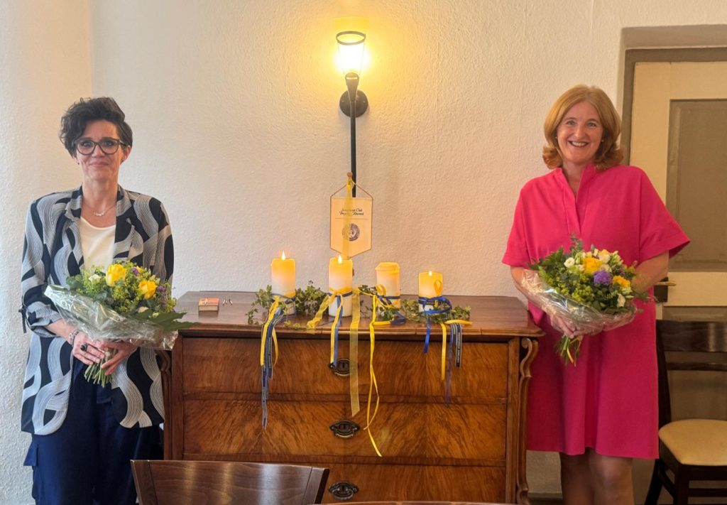 Susanne und Petra erhielten neben ihren Namensschildern auch jeweils einen Blumenstrauß, verbunden mit unseren guten Wünschen für unser gemeinsames soroptimistisches Engagement. Unser Club zählt mit den beiden neuen Clubschwestern nun insgesamt 19 Mitglieder.